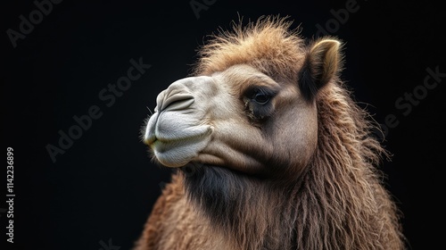 Obraz premium Bactrian camel portrait with detailed facial features against a black...