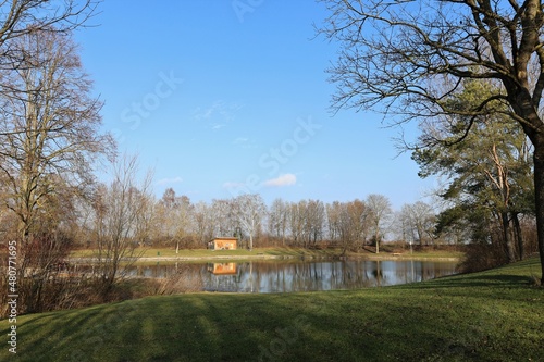 Obraz premium Badesee oder Weiher im Winter Galgenbachweiher