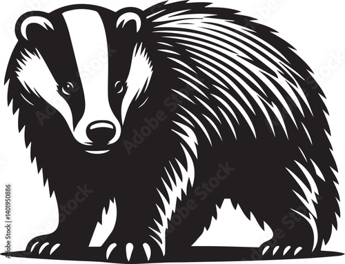 © Vector The King 1.0, Obraz premium Badger illustration, Badger silhouette vector isolated on white background full body