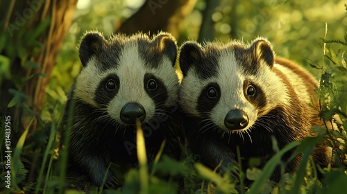 © Ava, Fototapeta premium Badgers in Nature: Wide Life Animal