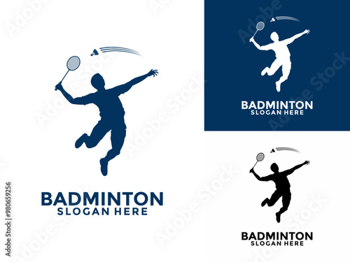 © Febrian, Naklejka premium Badminton logo design icon .Badminton sport logo template vector, Sport club badminton logo with Player concept
