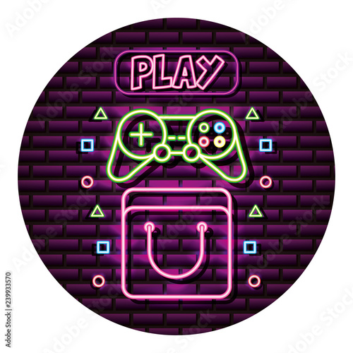 Obraz premium bag controller and play neon video game wall