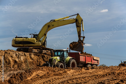Obraz premium Bagger und Traktor auf Baustelle