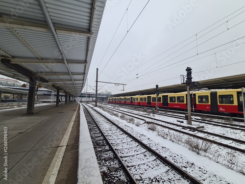 Naklejka premium Bahngleise mit Schnee in Berlin Lichtenberg