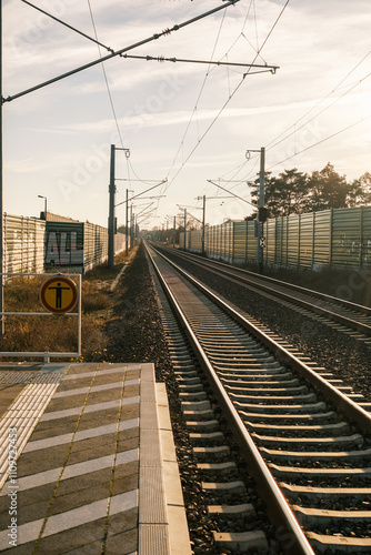 © Alexander Plentz , Fototapeta premium Bahnsteig und leere Gleise