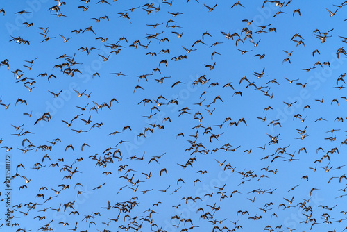 © 안구정화, Fototapeta premium Baikal Teal flock dance in the sky
