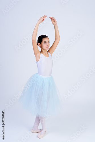 © Vicente, Naklejka premium bailarina de ballet con tutu blanco aislada con fondo blanco. Clases de ballet en la escuela de danza clásica