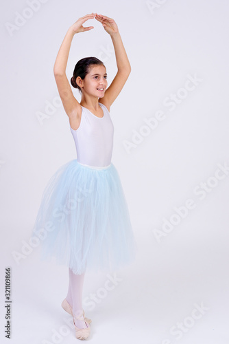 © Vicente, Naklejka premium bailarina de ballet con tutu blanco aislada con fondo blanco. Clases de ballet en la escuela de danza clásica
