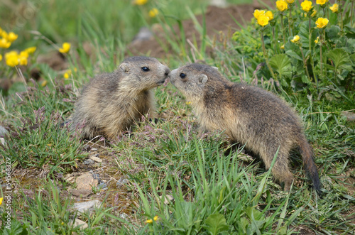 © Thierry Milherou, Naklejka premium Baiser de marmottons
