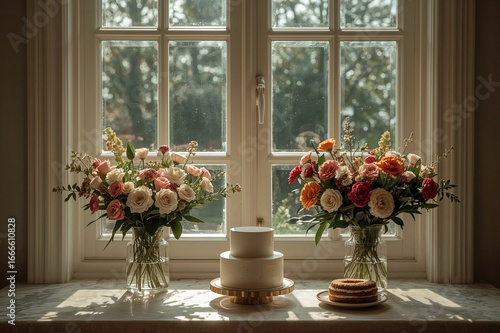 © The 2R Artificiality, Fototapeta premium Baked goods and blossoms in the dawn hours