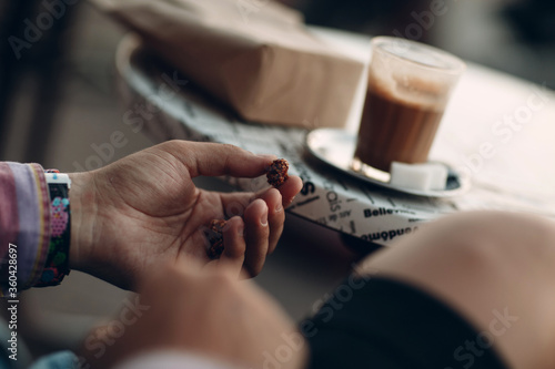 Obraz premium Baked nut dipping caramel and sesame ready to eat on hand