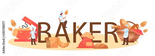 © inspiring.team, Obraz premium Baker typographic header. Chef in the uniform baking bread.