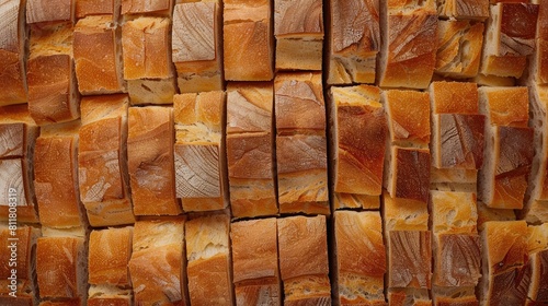 © buraratn, Fototapeta premium Bakery Basics: Top-down view of sliced bread, ideal for culinary designs.