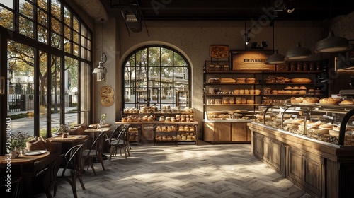 © AUAChanel, Naklejka premium Bakery Interior with Sunlight.