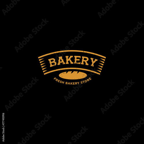 © Nataly, Fototapeta premium Bakery or Bread shop logo. Gold stamp logo isolated on black background.
