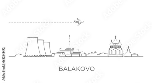 © godsfavoritearts, Fototapeta premium Balakovo with Russia Skyline, Line Art, and Minimalist.