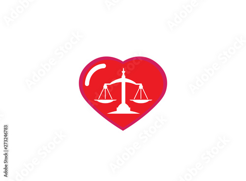 Fototapeta premium Balance symbol scales logo design illustration, law symbol in a heart shape love icon