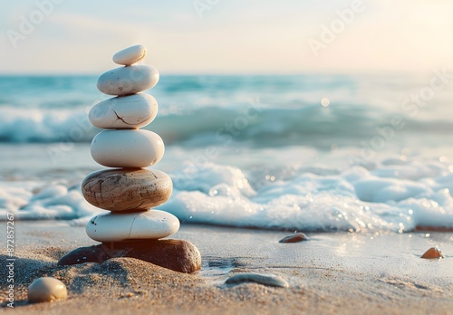 Fototapeta premium Balanced Stones on Beach, Harmony and Balance in Meditation
