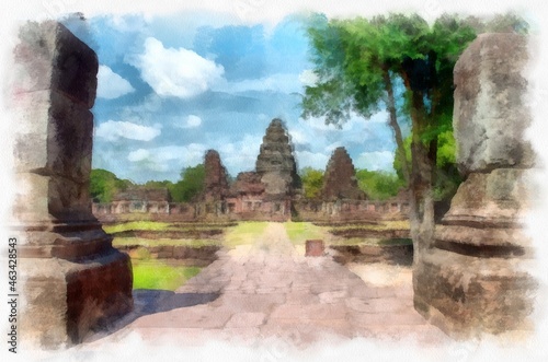 © Kittipong, Fototapeta premium balcony and windows of european architecture watercolor style illustration impressionist painting.