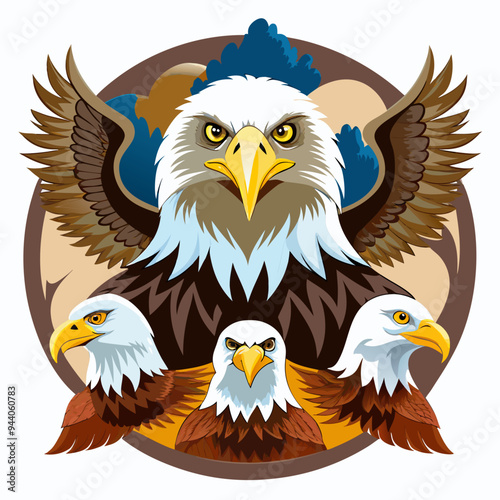 Obraz premium Bald Eagle and Three Chicks Surrounded by a Circular Frame