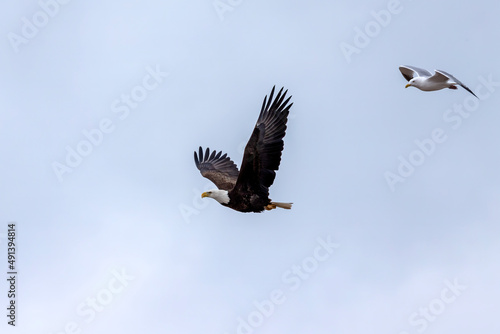 © Denny, Obraz premium Bald eagle being chased by a seagull