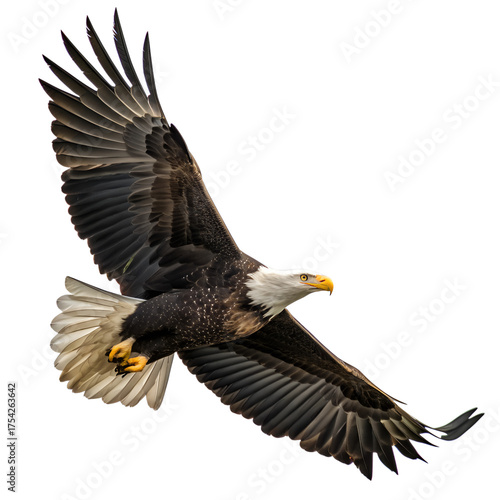 © mahrtgfx, Naklejka premium Bald eagle bird flying isolated on transparent background