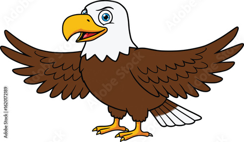 Fototapeta premium bald eagle, cartoon bird, flying eagle, eagle mascot, vector eagle, eagle drawing, animal illustration, eagle wings, eagle cartoon, smiling eagle, cartoon vector, bald bird, kids illustration,