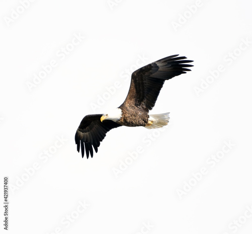 © Christine, Fototapeta premium Bald Eagle flying against a white background in Missouri