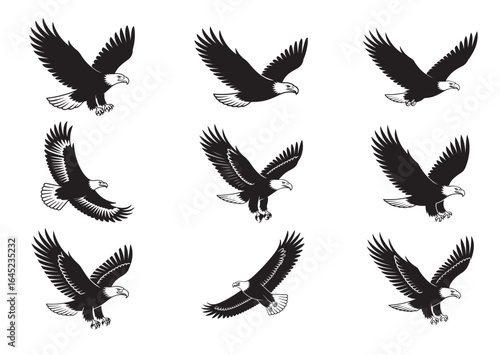 © Bismillah, Obraz premium Bald Eagle flying in the sky silhouette vector Set