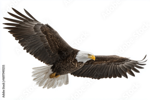 © ANISHA, Naklejka premium Bald eagle flying isolated on white background