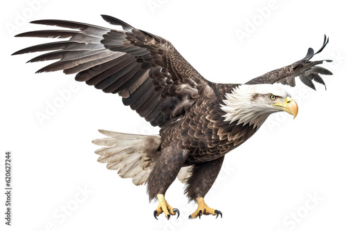 Obraz premium Bald eagle flying isolated on white, transparent background, PNG