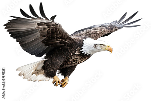 © Png - Video - Photo, Fototapeta premium Bald eagle flying isolated on white, transparent background, PNG, generative ai