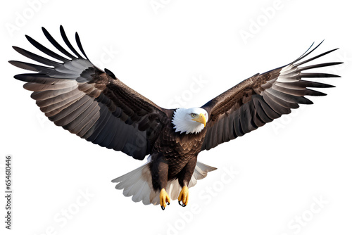 © mizan, Obraz premium Bald eagle flying on skies on transparent background, Generative AI