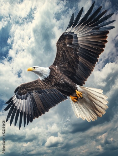 Obraz premium Bald Eagle Flying Through Cloudy Sky
