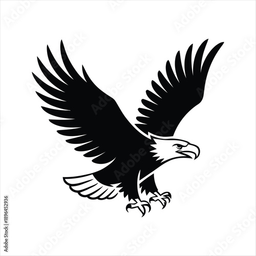 © GraphiqZone, Fototapeta premium Bald eagle flying wings spread black white illustration freedom power