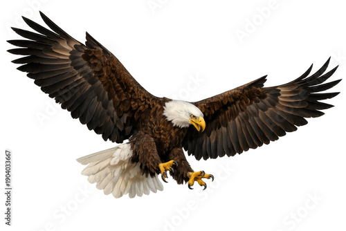 © Krtola , Fototapeta premium Bald eagle flying with wings spread, talons extended during hunting on transparent background