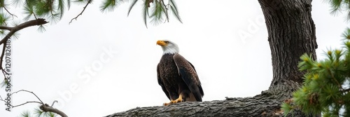 © AiGallery, Obraz premium Bald eagle gazing out from a high branch, wildlife, twig, birds