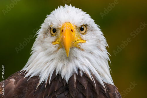 Obraz premium Bald eagle. Haliaeetus leucocephalus headshot close up. Majestic bald eagle portrait.