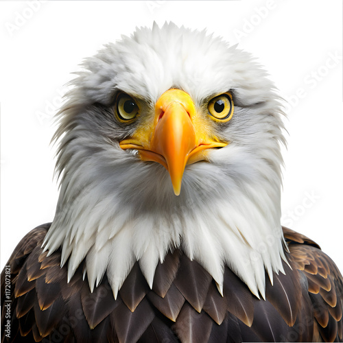 © Natasha, Fototapeta premium Bald Eagle - Haliaeetus leucocephalus in front on a white isolated BACKGROUND