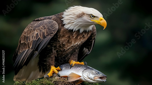 © Robin, Fototapeta premium Bald Eagle Holding Fish In Forest