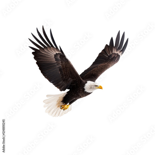 © Kamonwan, Obraz premium Bald eagle in flight against a white isolated background.