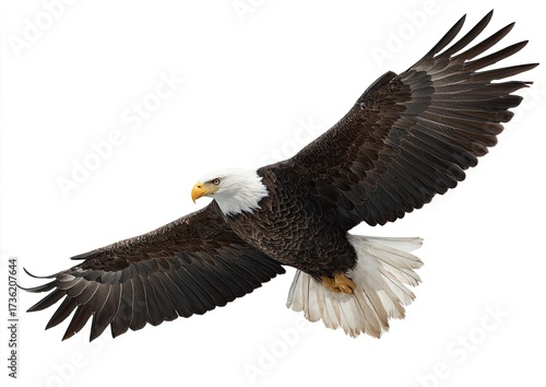 © Garage art, Naklejka premium Bald eagle in flight, against white background