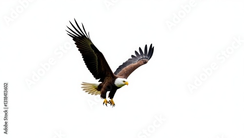 © AImmersive Imagery, Fototapeta premium Bald Eagle in Flight Against White Background, Isolated
