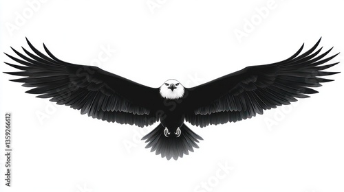© Mufarokah, Obraz premium Bald eagle in flight against white background. Possible use for nature/wildlife stock