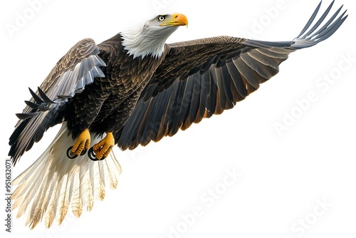 © Ai Creator, Obraz premium bald eagle in flight on a white background