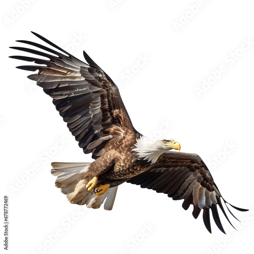 Fototapeta premium Bald eagle in flight on white background