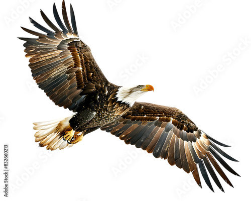 Obraz premium Bald eagle in flight symbol of freedom on transparent background