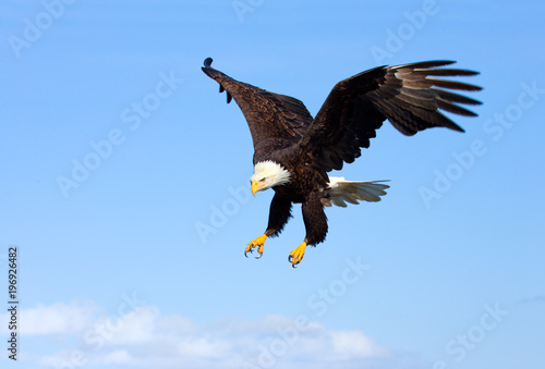 Obraz premium Bald Eagle in Flight with Blue Sky. Alaska