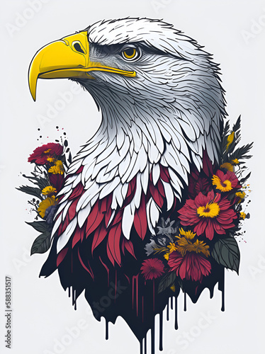 Fototapeta premium Bald Eagle in flowers. AI generated illustration