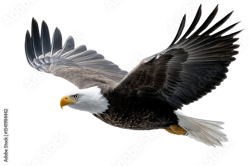 © PNG King, Fototapeta premium Bald eagle in graceful flight over a clear sky